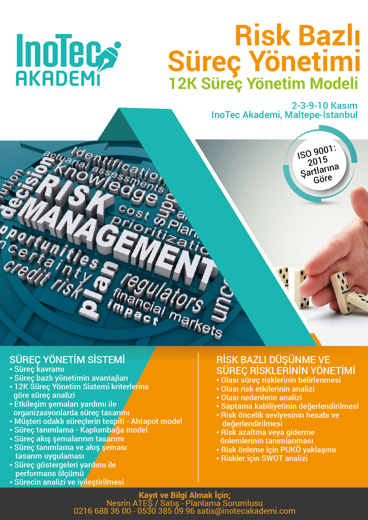 Eğitim Programı; süreç tanımlama, gözden geçirme, göstergeler ile ölçüm ve sürekli iyileştirme faaliyetlerini kapsayan 12K Risk Bazlı Süreç Yönetim Modeli kriterleri doğrultusunda ihtiyaç duyulan bilgi ve becerilerin uygulamalar yardımı ile katılımcılara aktarmasını amaçlamaktadır. Bu program ISO 9001:2015 ve IATF 16949 Kalite Yönetim Sistemi Temel Şartları doğrultusunda uygulamaları içermektedir.